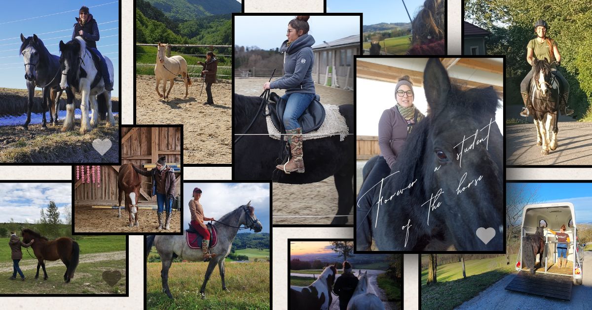Seit ich 1998 mein erstes eigenes Pferd bekam, bin ich ein Wissensjunkie. Es vergeht kein Zeitraum, in dem ich nicht eine Ausbildung absolviere, eine Fortbildung besuche oder mindestens ein bis drei Bücher gleichzeitig lese. So entwickle ich mich – und damit auch meine Arbeit – laufend weiter. Mein Leben ist erfüllt von Pferden und dreht sich überwiegend um die Themen Gesundheit, Lernen und Wohlbefinden.